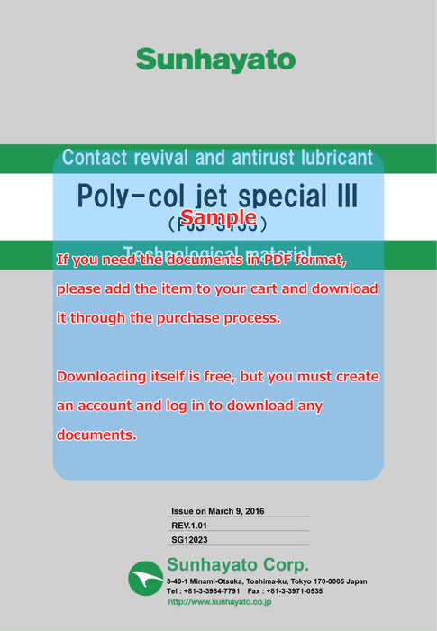 ※販売終了※ポリコールジェットSPECIAL3(PJS-S133)のTDS(技術資料)/英語版を、pdfファイルでご用意しました。